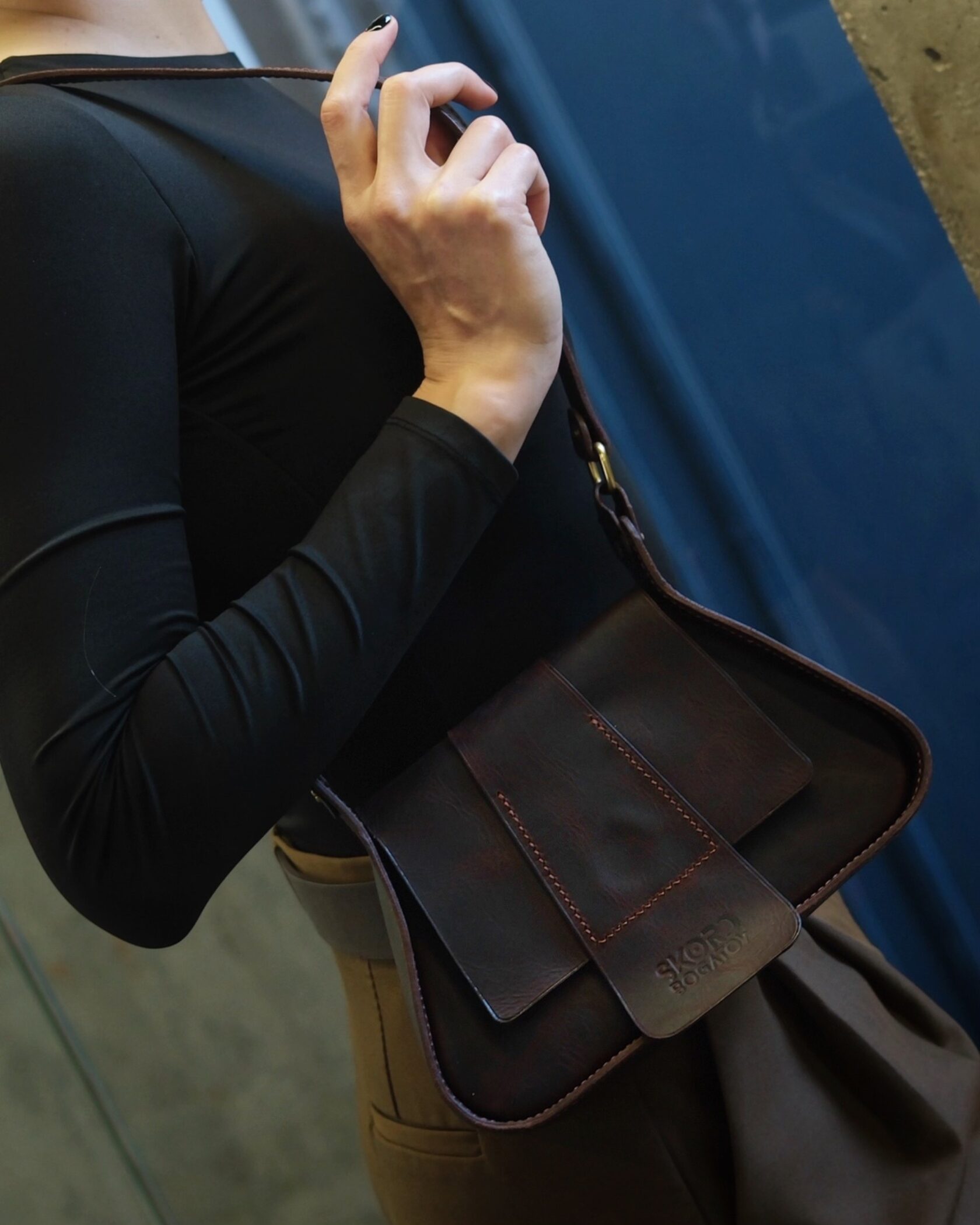 Форма основана на классике: ровные линии, аккуратный клапан, продуманная геометрия. Эти пропорции не пытаются привлечь внимание — они работают на удобство и создают спокойный, собранный силуэт. Размеры продуманы так, чтобы внутри помещалось всё необходимое.