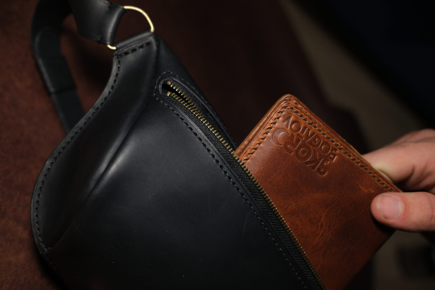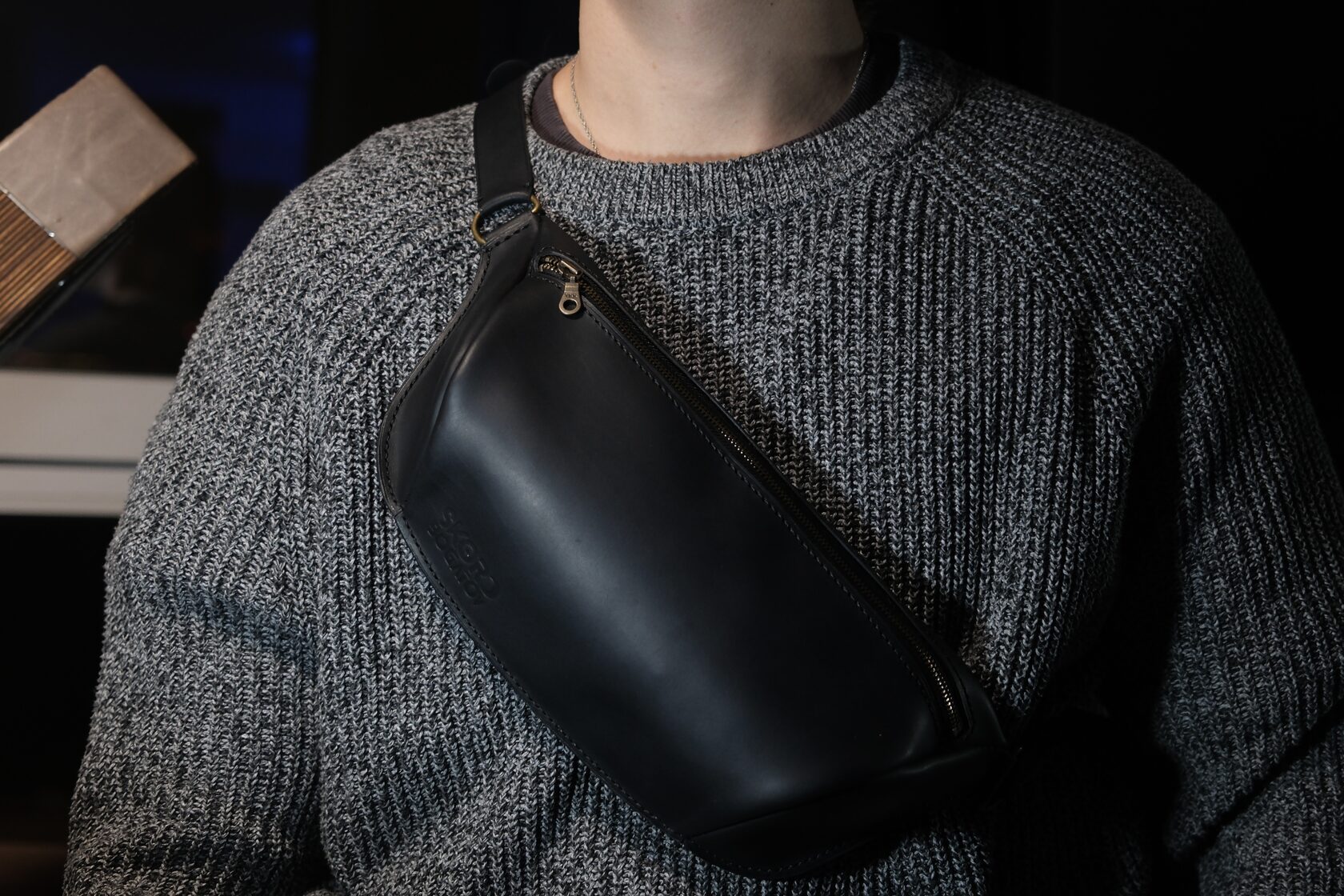 Сумка может носиться через плечо или на поясе — конструкция позволяет обе позиции без деформации корпуса. Внутреннего пространства достаточно для базовых предметов — телефона, ключей, документов, небольшого кошелька.